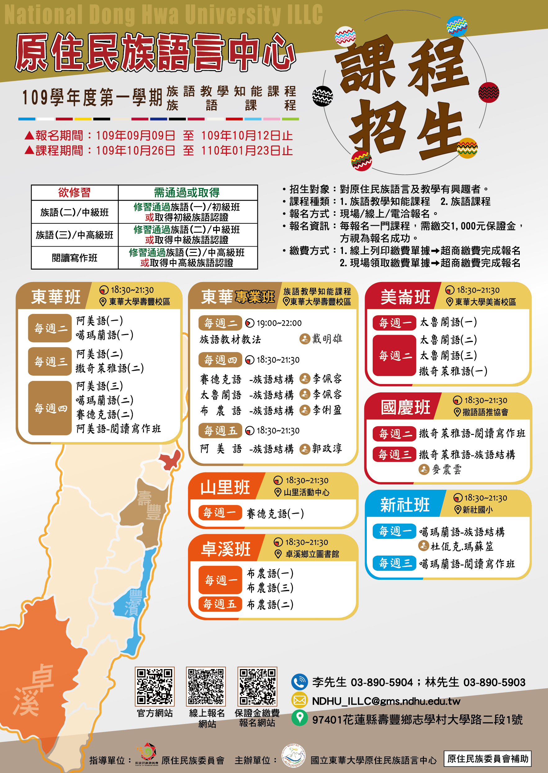 | 布農語(一)暨初級學習班 | 109 | 上學期 | 單一族語學習班 |