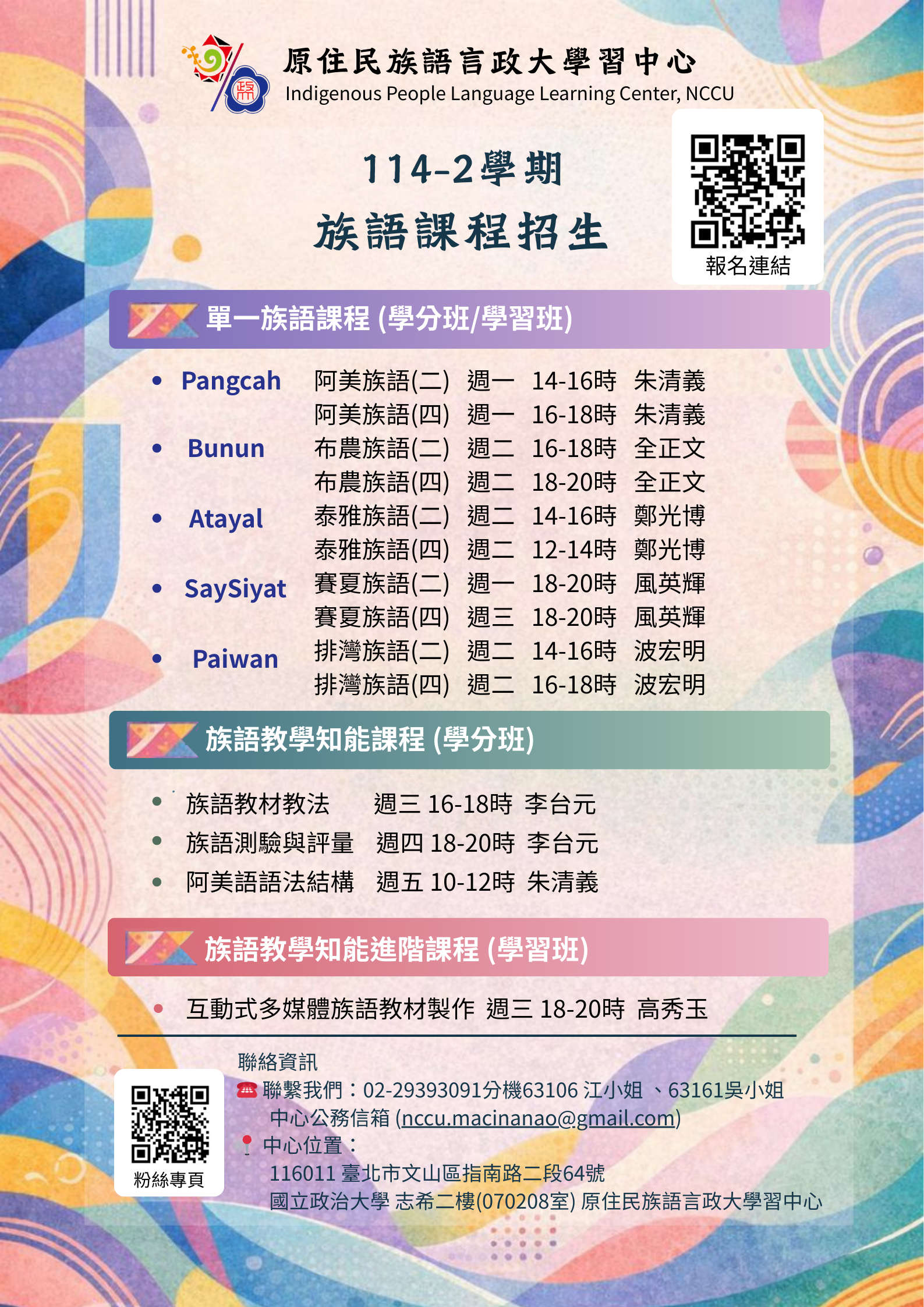 | 排灣族語(四) | 114 | 下學期 | 學分班 |