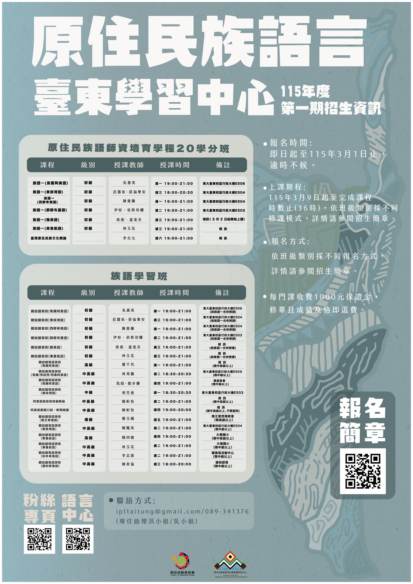原住民族語言學習中心 115學年度第一期課程開放報名